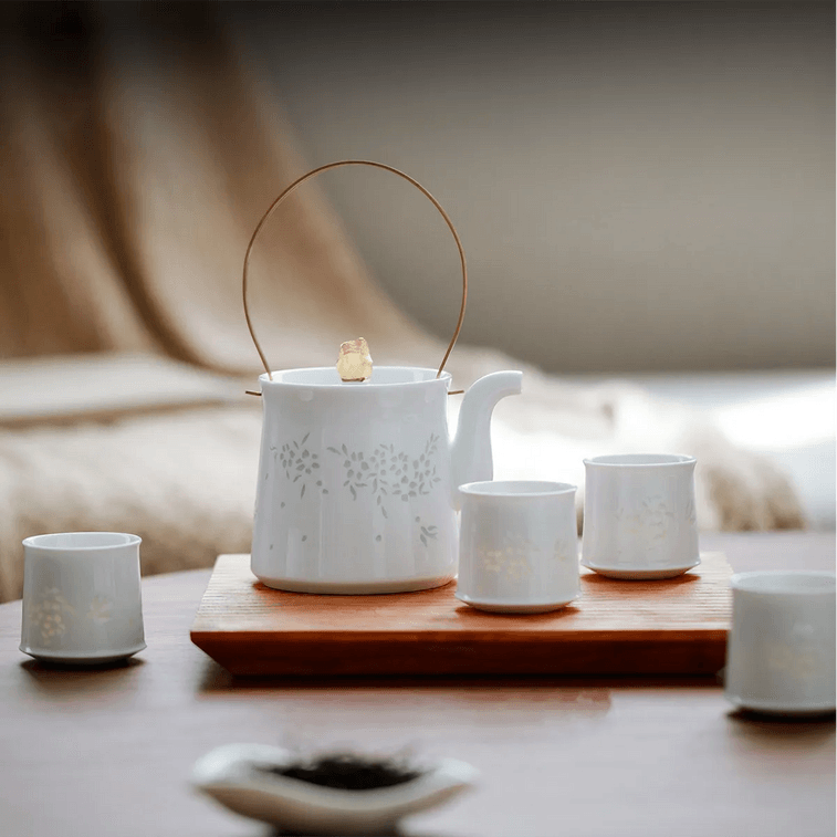 LANYINDONGFANG Jingdezhen Linglong Ceramic Tea Set 1 Teapot 1 Fair Cup 4 Cups, 1 Set | Yami
