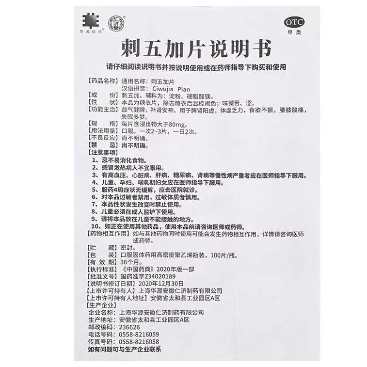 100 Pieces of Acanthopanax senticosus tablets per bottle or box