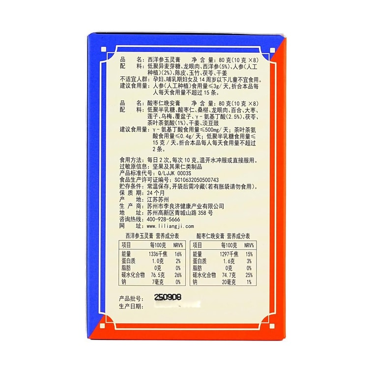 American Ginseng Yuling Paste and Chinese Date Seed Paste 10g*16packs