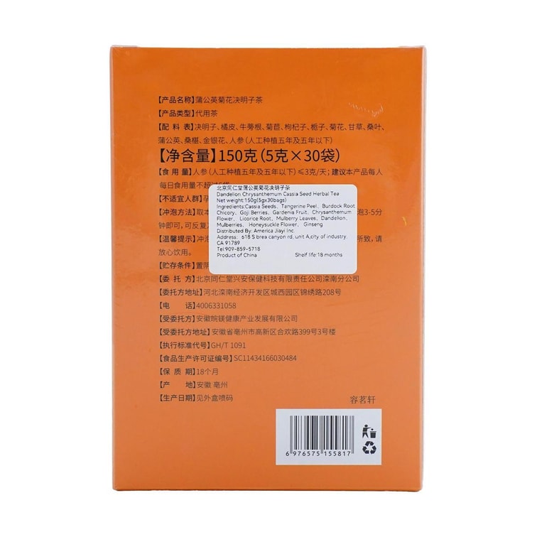 Chrysanthemum, Dandelion and Cassia Seed Tea 150g(5g*30packs)