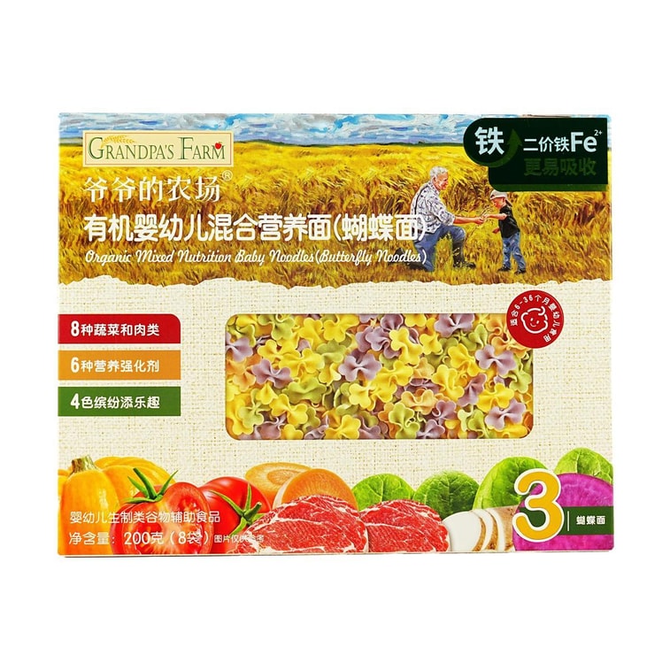 Organic Infant and Toddler Mixed Nutritional Noodles (Butterfly-shaped) 200g
