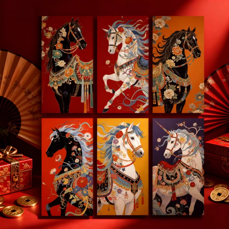 2026 Bingwu Horse Year: 6-pc Tactile Red Envelope