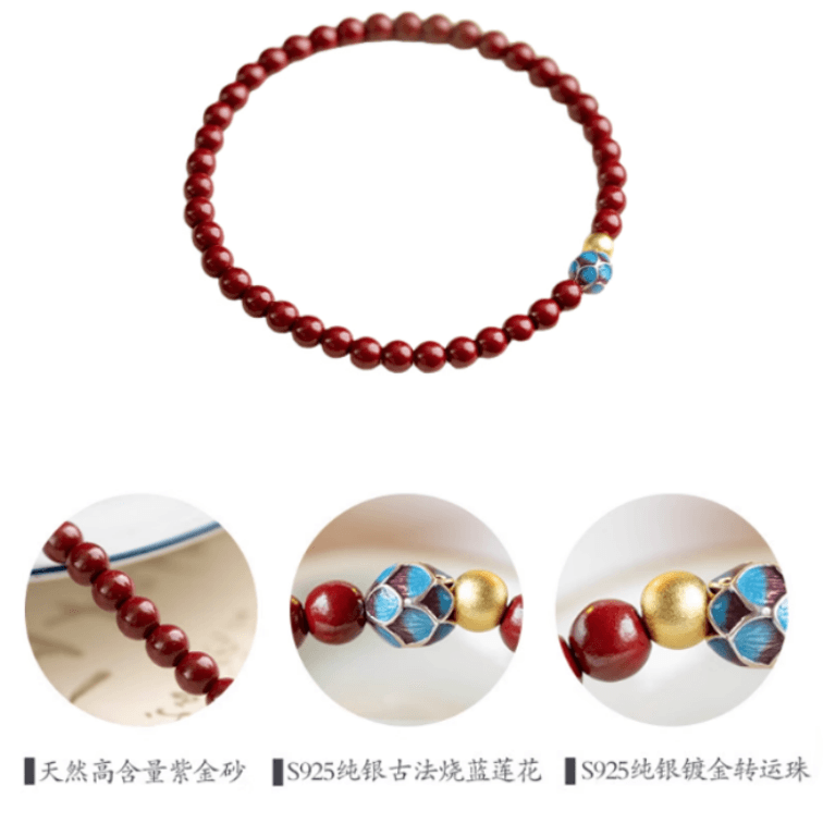 2026 Horse Zodiac Year Natural Cinnabar Purple Gold Sand Bracelet with Calm Lotus Fortune Bead Bracelet Women Gift 4mm Incense Infused Style 1 Piece