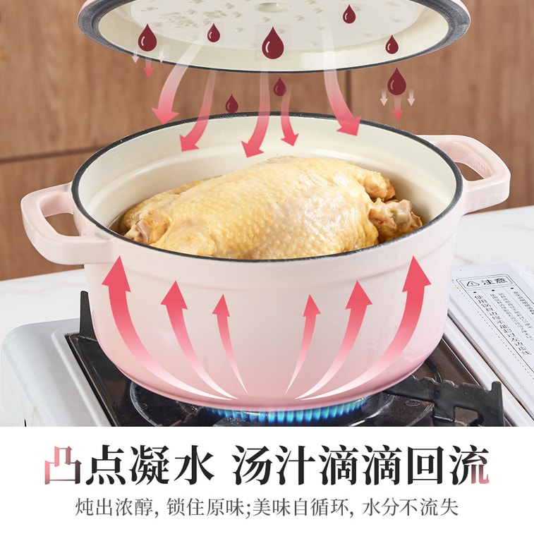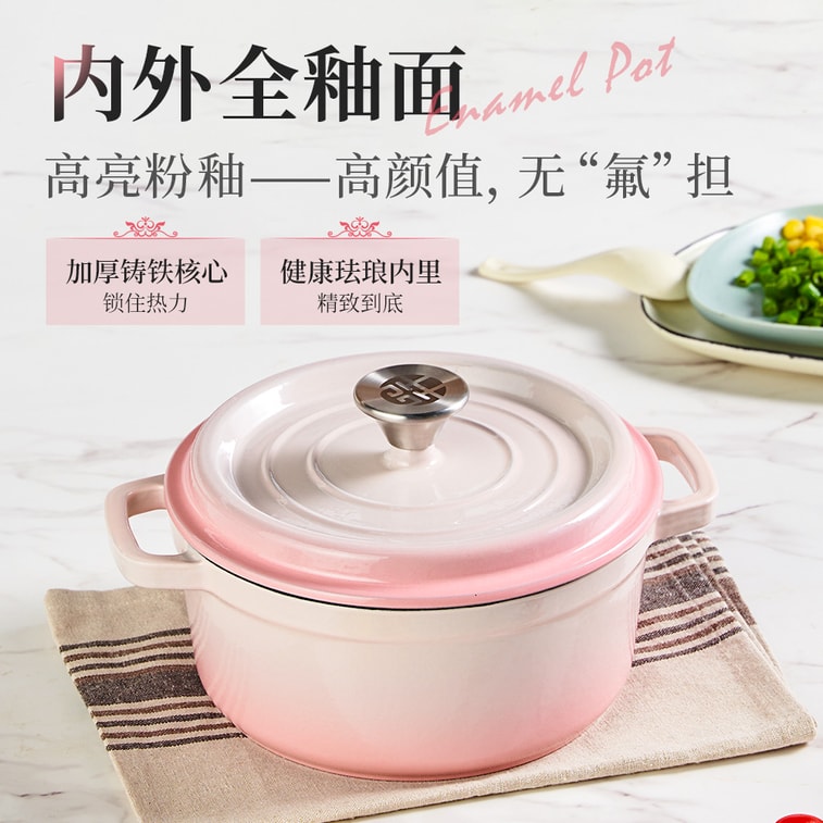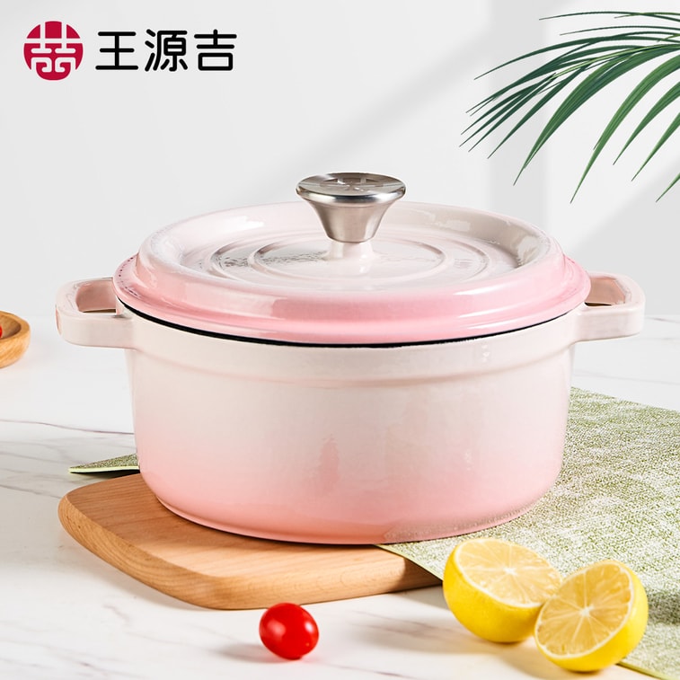 WANGYUANJI 【Beauty with Brains】22cm Sakura Pink Cast Iron Enamel Dutch Oven, For Gas And Induction,Oven-Safe for Roasting Chicken & Baking Bread, Dishwasher Safe | Yami