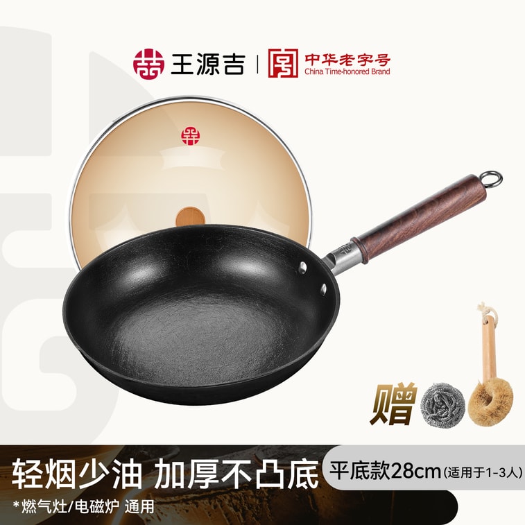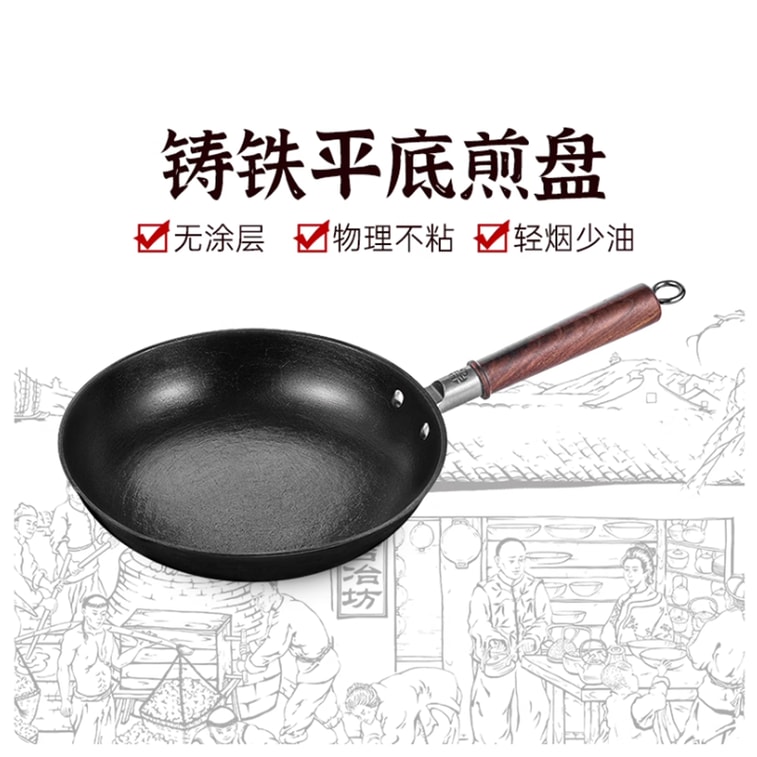 WANGYUANJI 28CM Cast Iron Skillet Non-Stick Coating-Free Flat Pan for Frying Steak Pancakes – Home Use Gas & IH | Yami