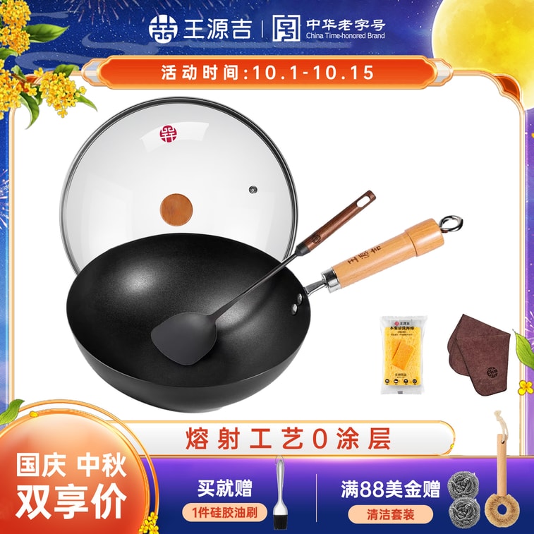 28CM Upgraded Carbon Steel Wok + Spatula Carbon Steel Pan Flat Bottom No Chemical Coated For All Stoves