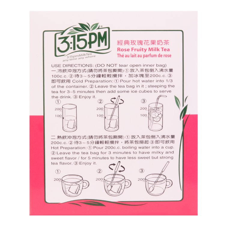Craving for rose fruity milk tea but don’t want to leave your comfy home? 3:15PM Rose Fruity Milk Tea got your back! It uses real tea leaves and comes as a tea bag to ensure the quality. Simply add hot water and then you can taste the milk tea that is as good as the one freshly made!