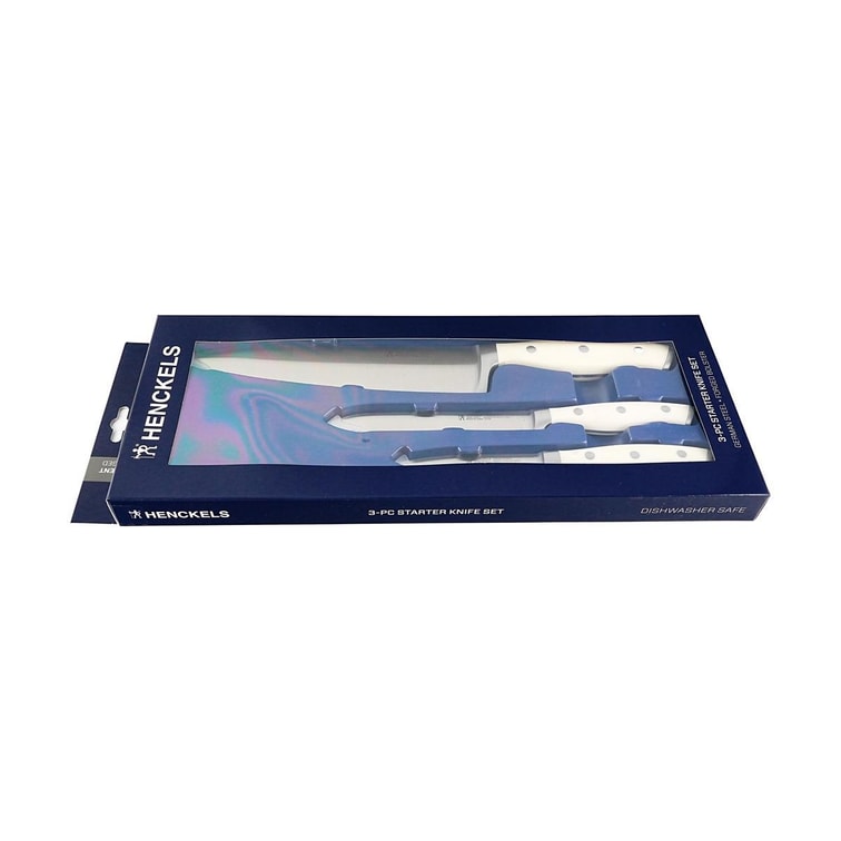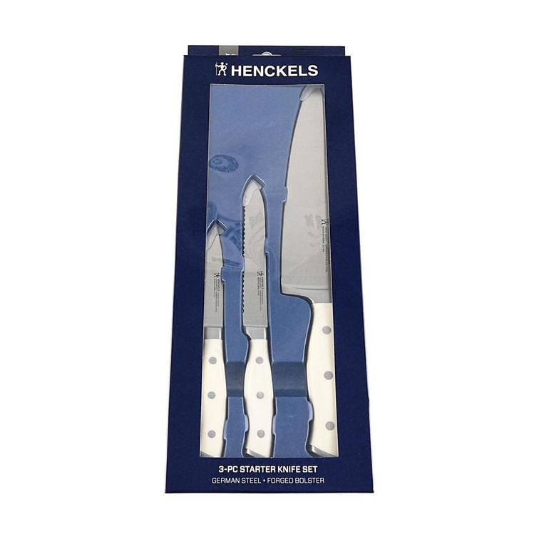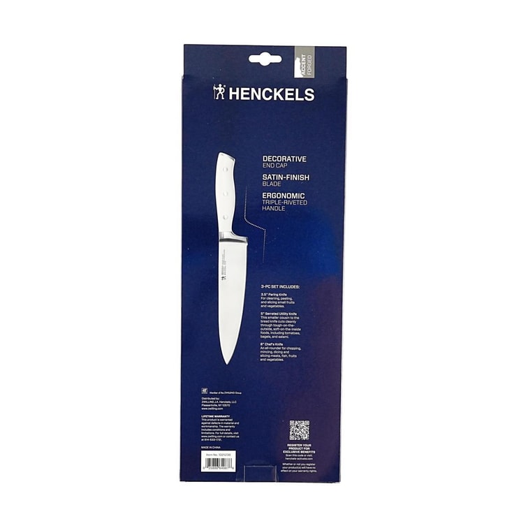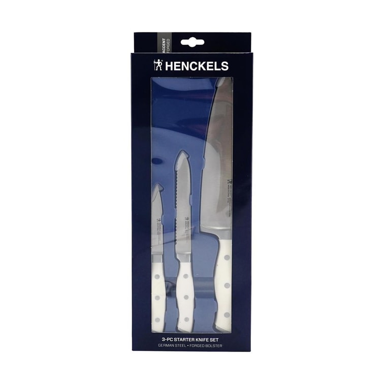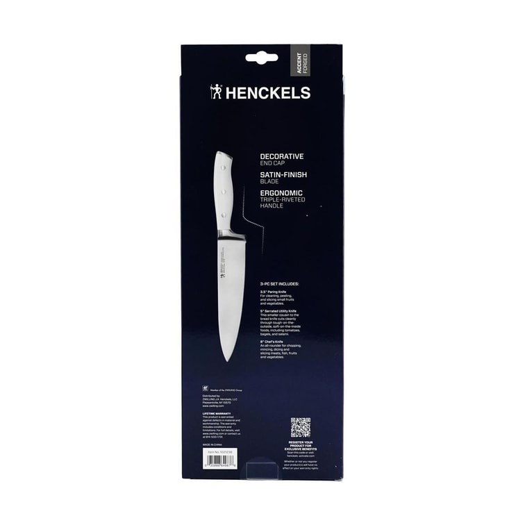Henckels Forged Accent 3-Piece Single Rivet Kitchen Knife Set - 4" Paring/5" Serrated Utility/8" Chef's Knife, White