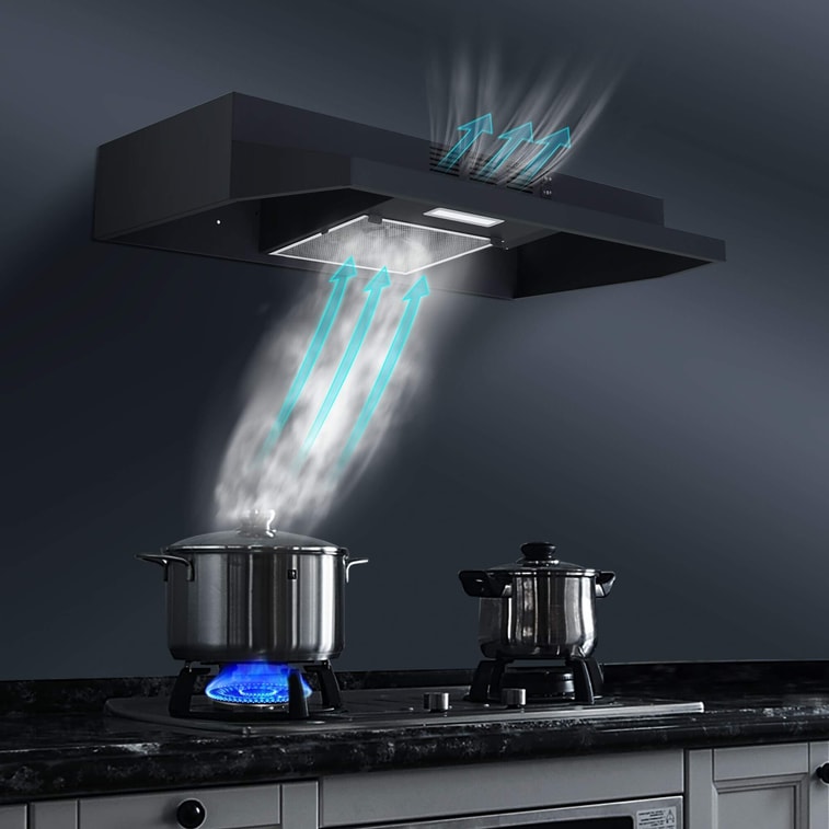 30 Inch Under Cabinet Range Hoodwith LED Light & 2 Speed Exhaust Fan Black | Yami
