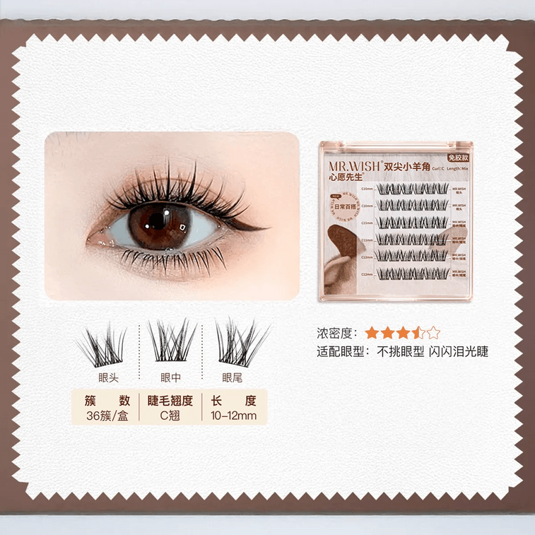 mrwish 3-Step for Lazy Girls, Double Pointed Lamb Homs Eyelashes, 36pcs | Yami