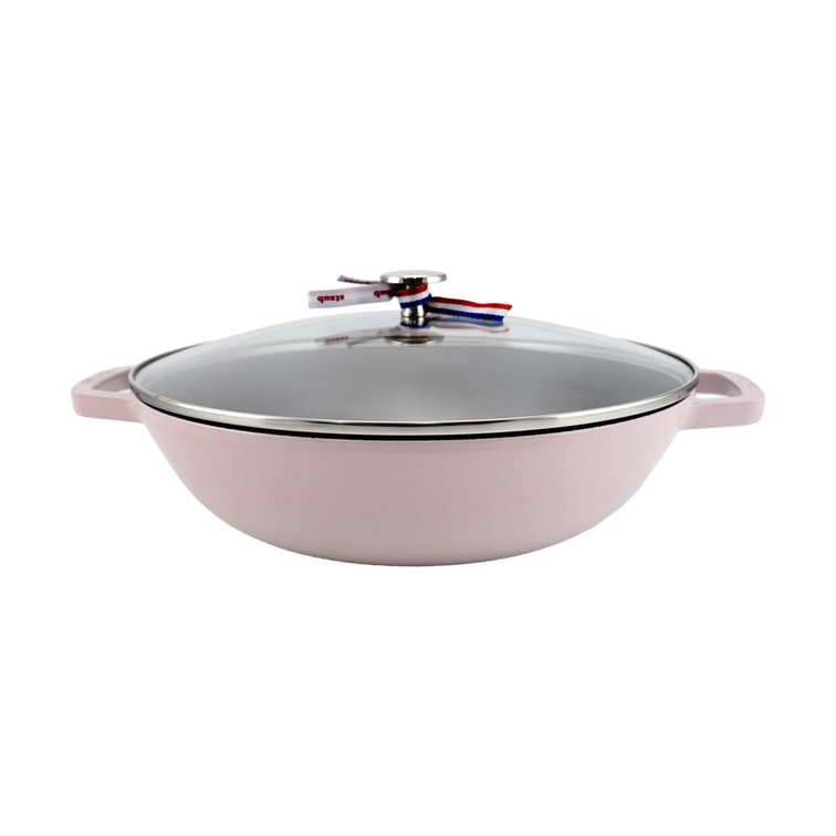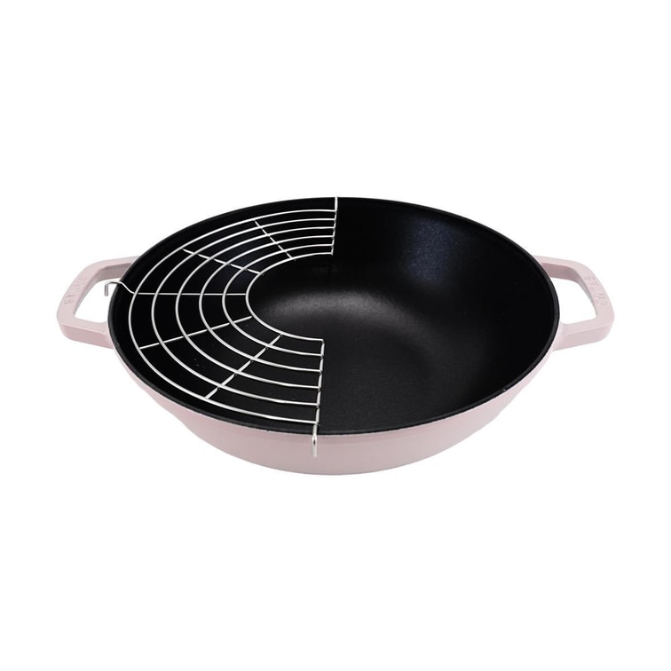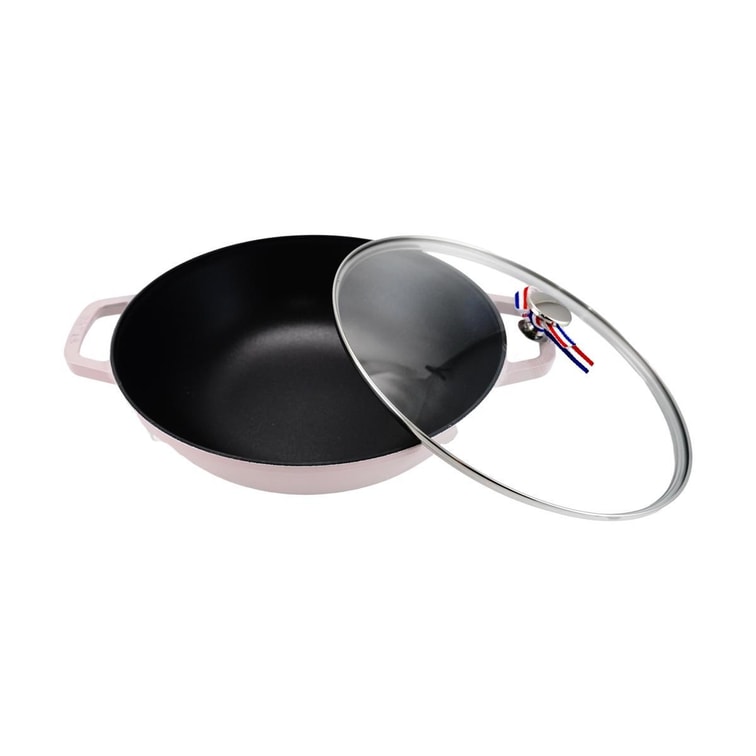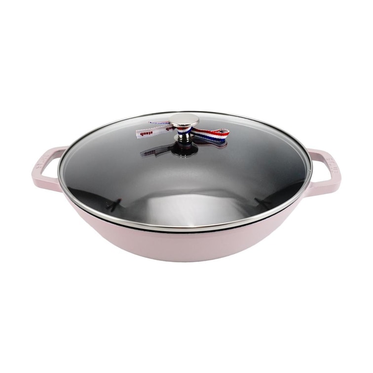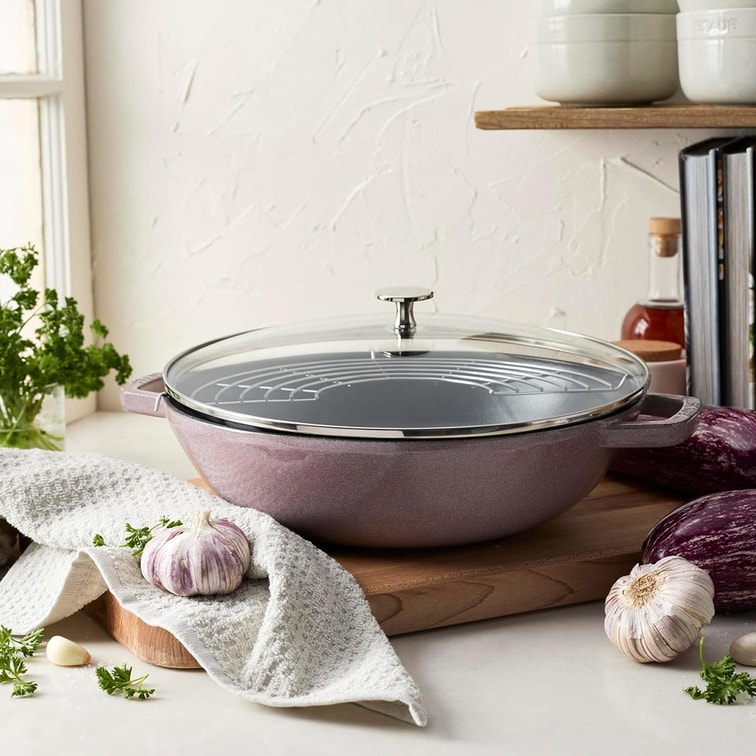 STAUB 4.5-qt Cast Iron Flat-Bottomed Stir-Fry Pan, Peony Pink