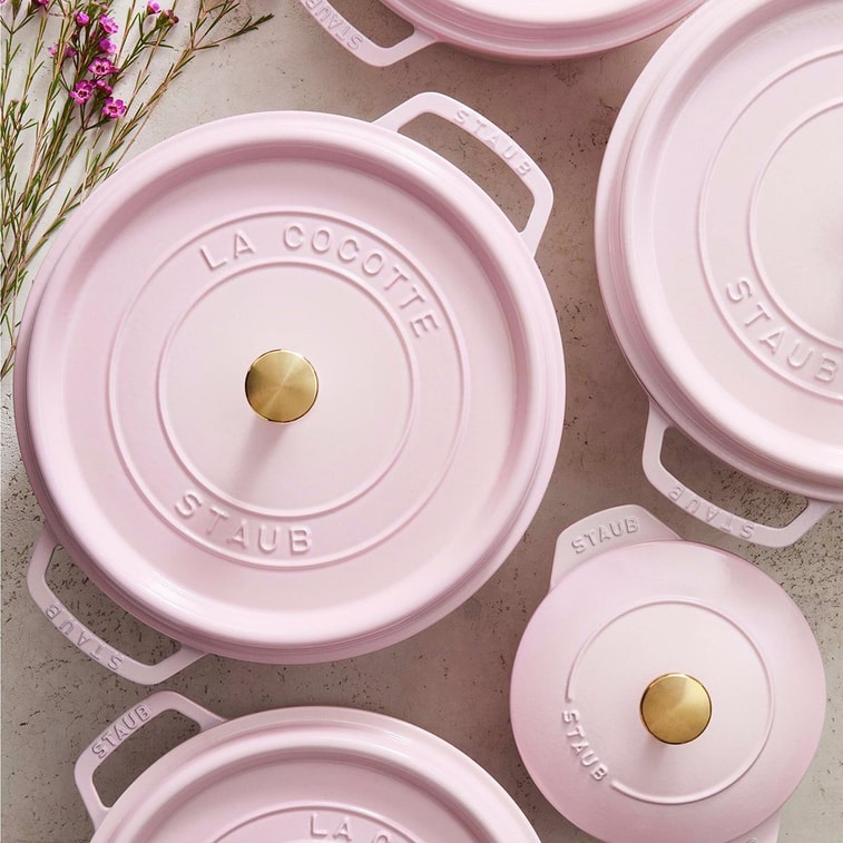 Round Dutch Oven, Enamel - coated Cast - iron with Double Ears, Peony Pink,4QT