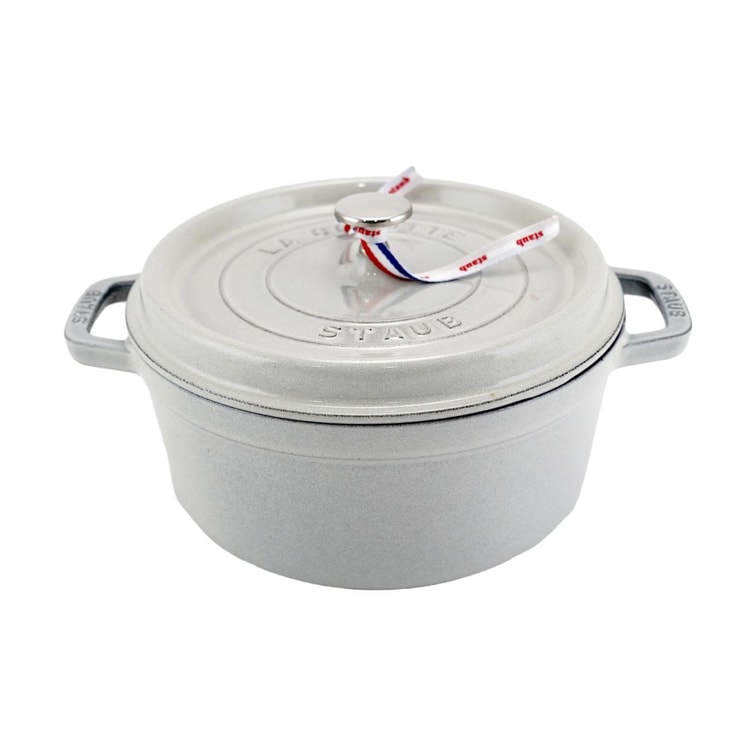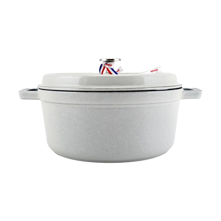 Round Dutch Oven, Enamel - coated Cast - iron with Double Ears, White Truffle,4QT