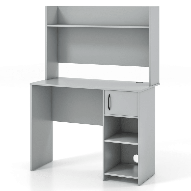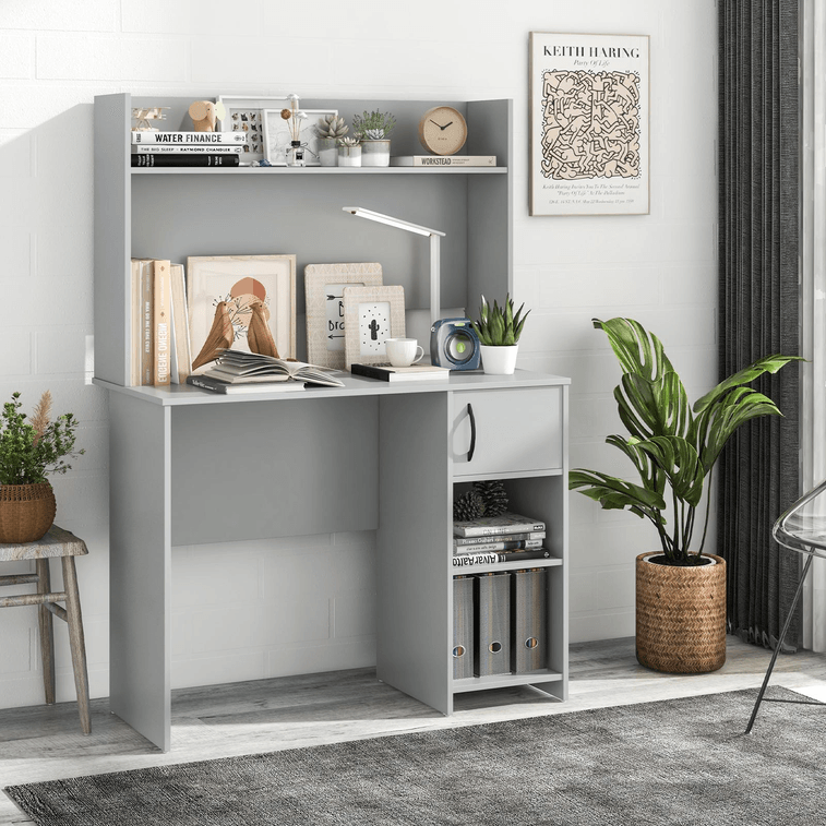 41.5 Inch Home Office Desk With Raised Display Shelf And 2 Open Shelves-Gray | Yami