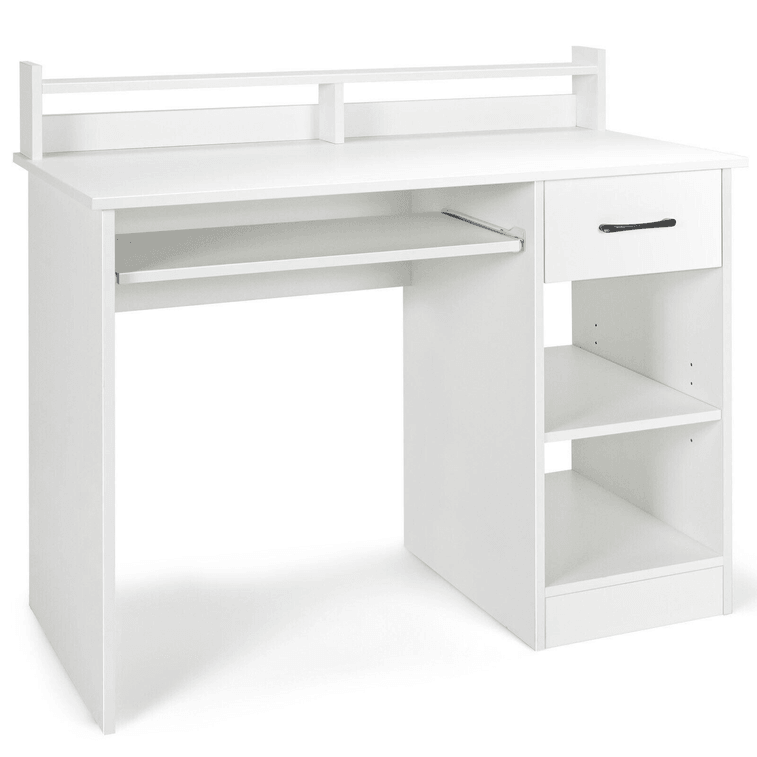 41.5 Inch Study Laptop Table With Drawer And Keyboard Tray-White | Yami