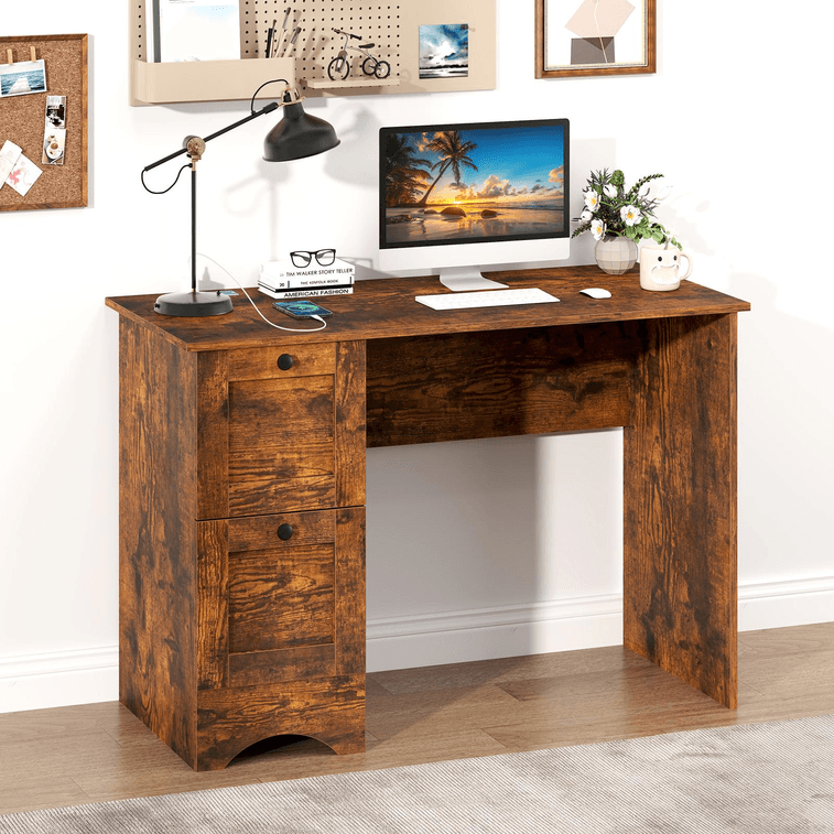 43 Inch Wooden Computer Desk Workstation With 3 Drawers for Home And Office-Rustic Brown