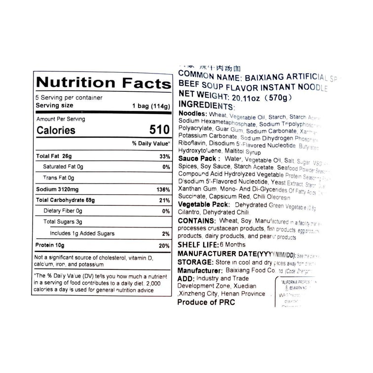 Spicy Beef Flavor Noodle Soup - Instant Noodles, 5 Packs* 3.91oz