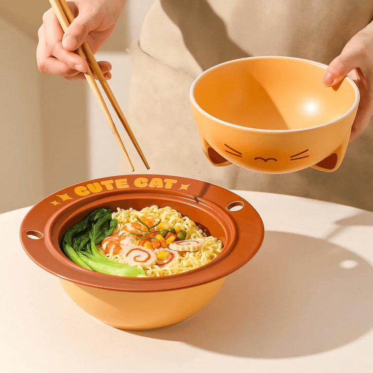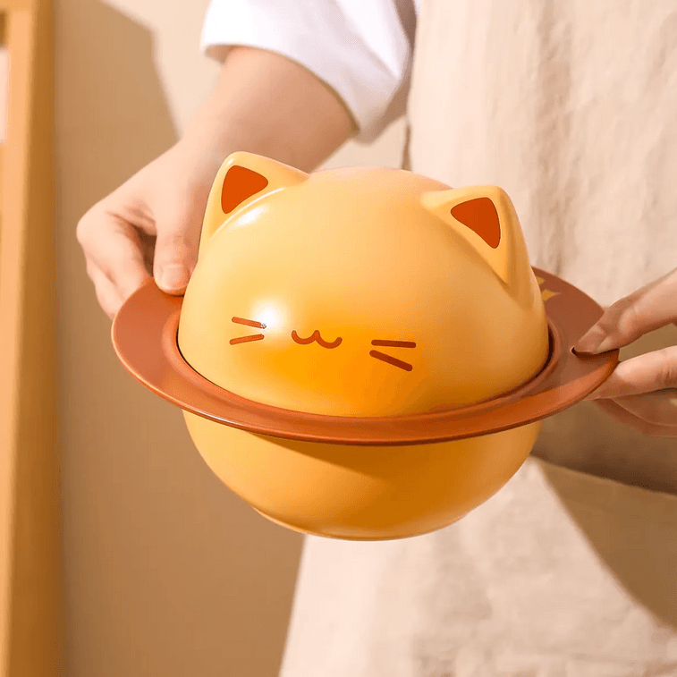 Cat Planet Noodle Bowl Ceramic Tableware Gift Set with Chopsticks and Spoon