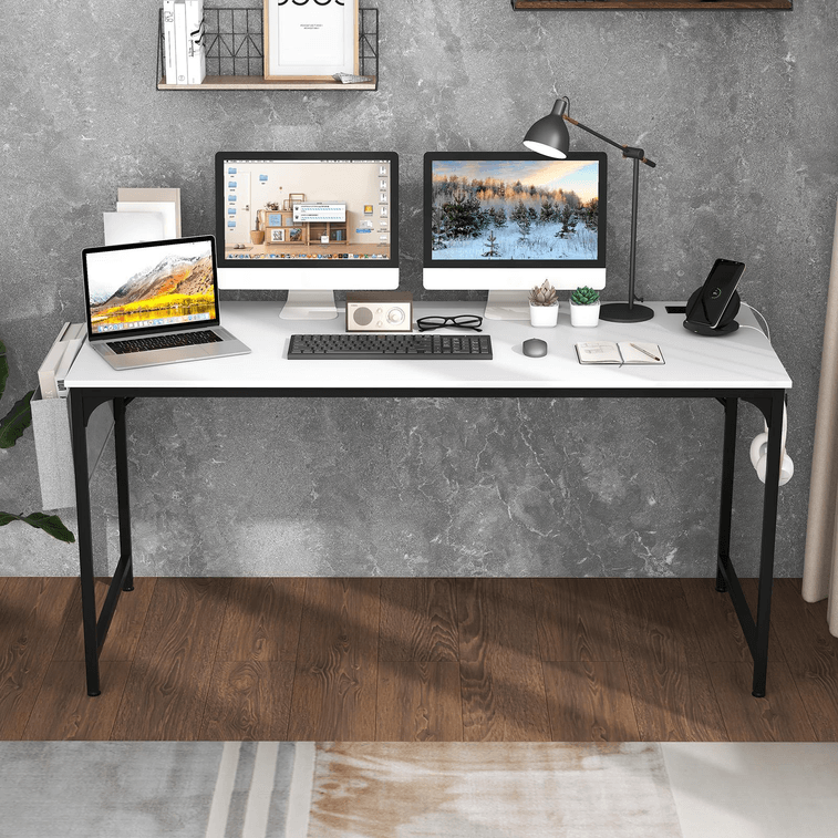 60 Inch Computer Desk With ChargIng Station Storage Bag-White