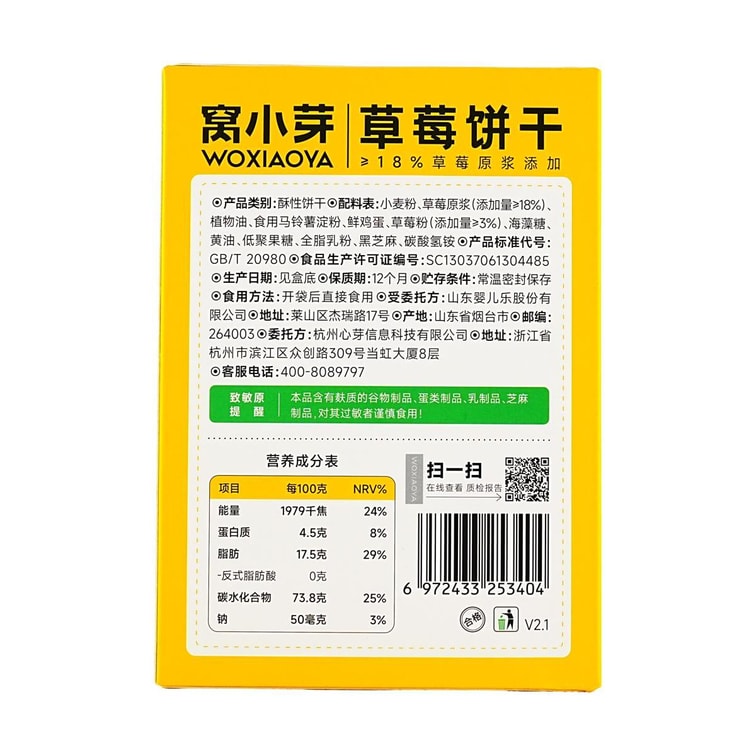 Woxiaoya Strawberry Cookies, Infant & Toddler Nutritious Complementary Food, 65g