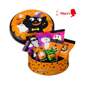 This candy jar features a ghost being frightened by a large black cat. Filled with chocolates and marshmallows, it makes a great gift.