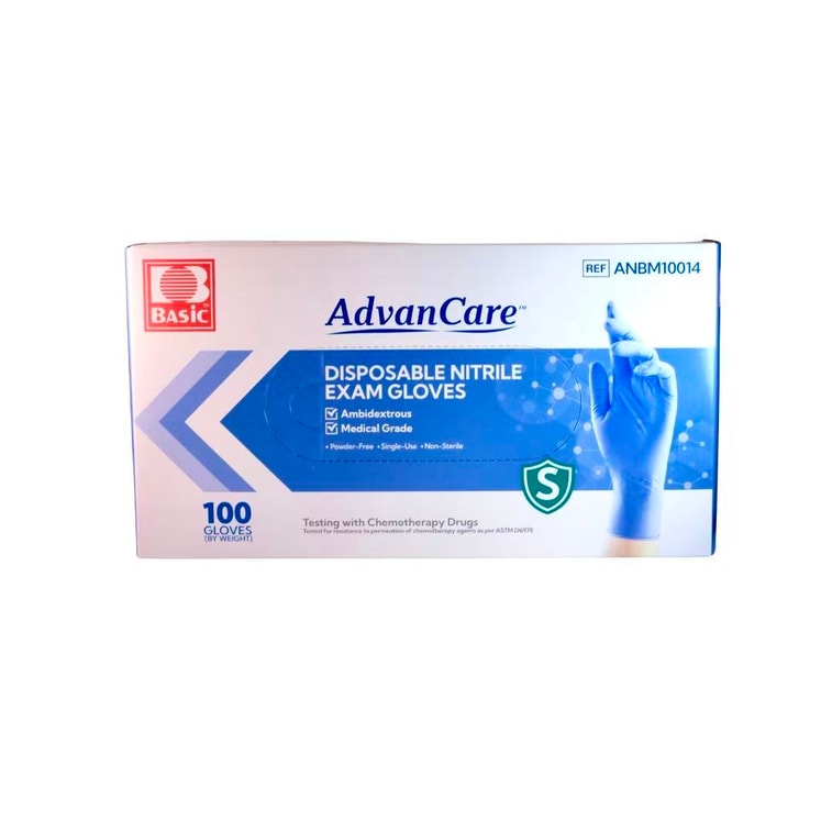 Basic AdvanCare Medical-Grade Disposable Nitrile Gloves Powder-Free High Strength Protective Use 100 Gloves (Small)