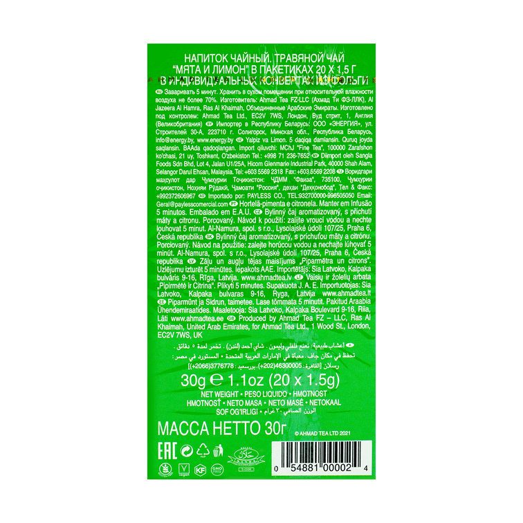 AHMAD PEPPERMINT & LIME TEA 20ct