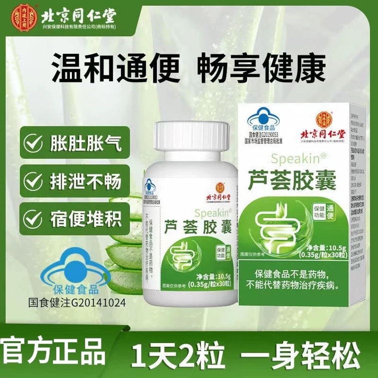Aloe Vera Capsules, for bowel relaxing and constipation relief, with 30 capsules per bottle