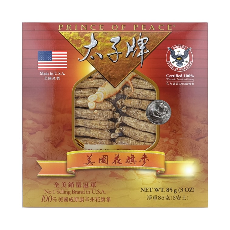 PRINCE OF PEACE 【Essential for Spring Festival】American Wisconsin Ginseng GBW Certified Ginseng Long root 3oz/ 85g Nutritious No.1 Selling Brand in USA | Yami