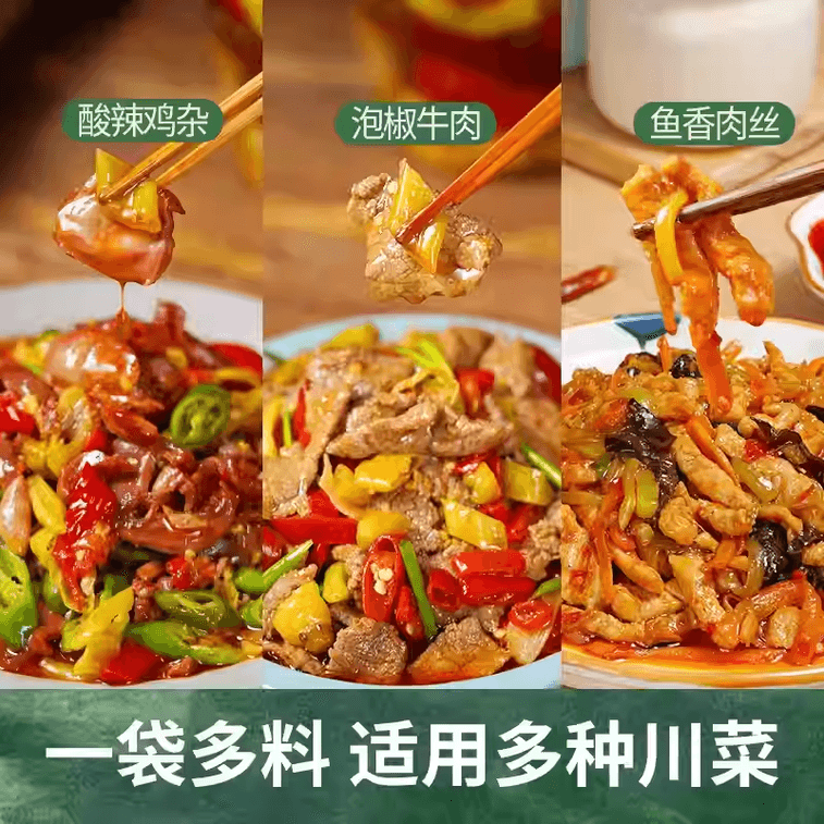 Ancient Shu Flavor Spicy Three Treasures Sichuan Pickles: Pickled Ginger, Pickled Chili, and Millet Chili Spice Mix for Home Cooking, 250g*1 Pack