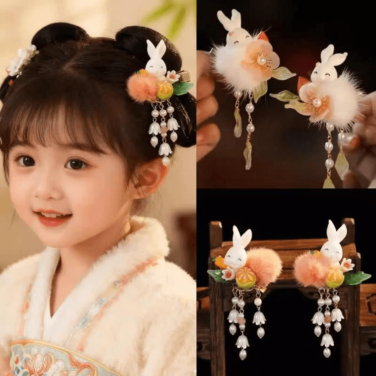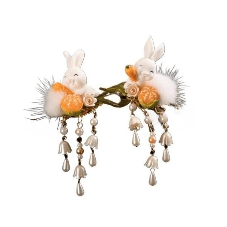 Ancient Style Cute Rabbit Pompom Orange Hairpin Pompom Rabbit 6cm*1 Pair | Yami