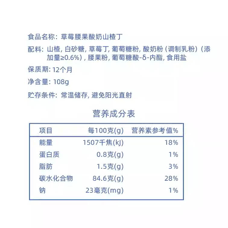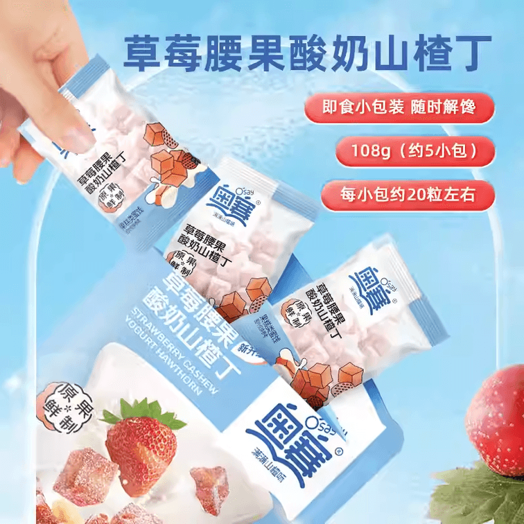 Aosai Strawberry Yogurt Hawthorn Cubes Children's Snack Hawthorn Preserved Fruit Leisure Original Fresh Hawthorn Snack 108g*1 Bag
