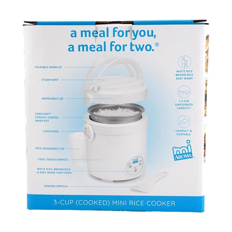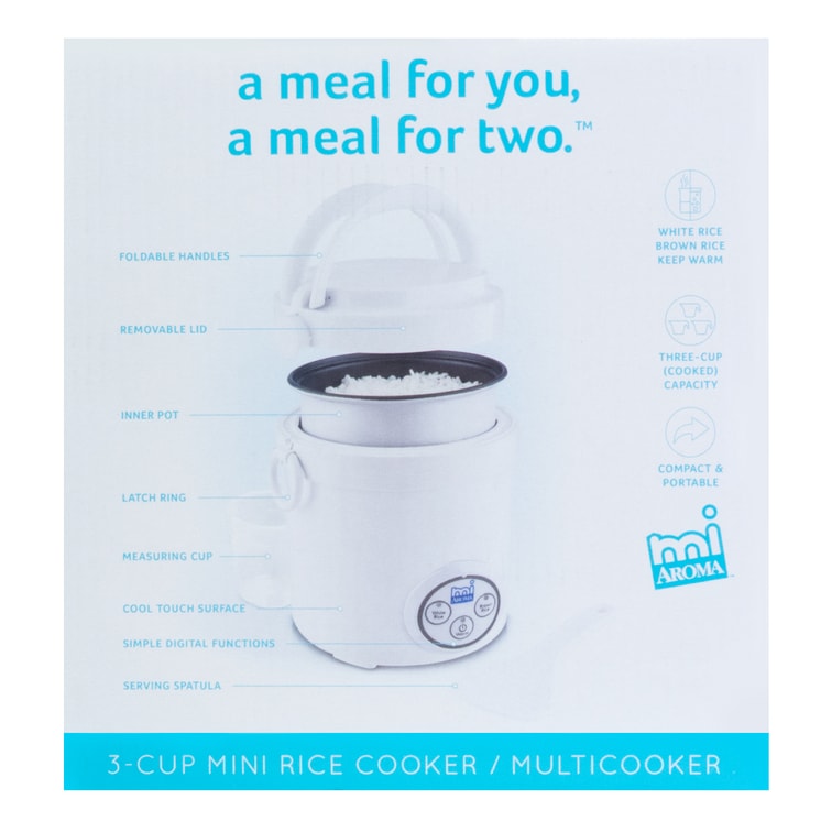Have a meal with mi or invite a friend. mi AROMA mini rice cooker makes more than rice with one touch: white/brown rice, cake, soup, pasta, omelettes and so much more can be made in mi Rice Cooker with just the right recipes! It's mini, portable, quick and compact.
