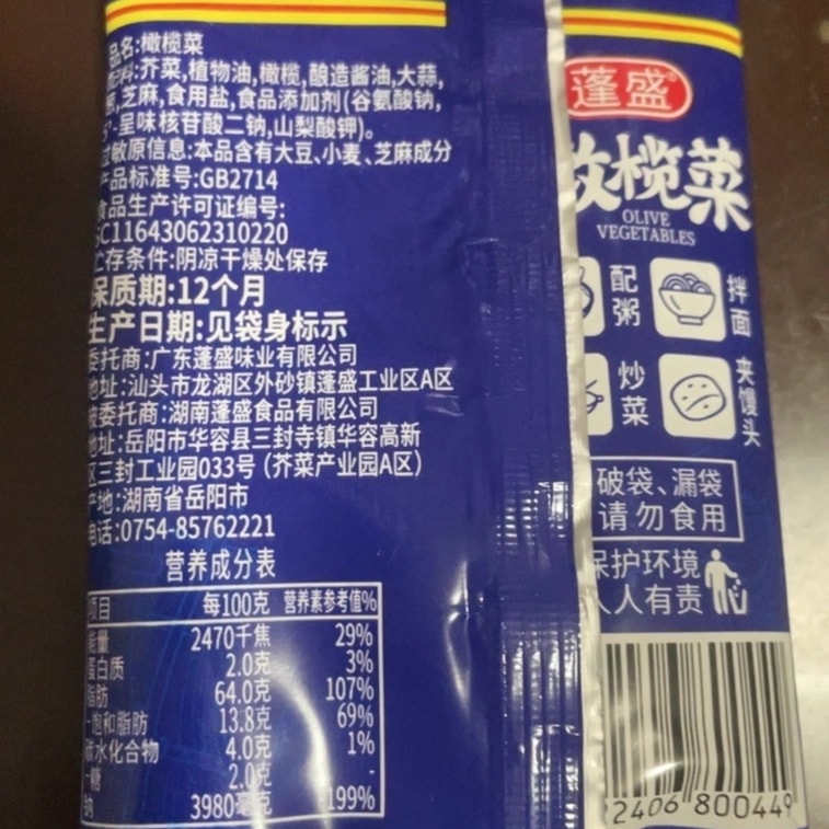 PENGSHENG Authentic Olive Vegetable & Chaoshan Preserved Vegetable Household Pickled Side Dish for Rice 30g x 5 Packs | Yami
