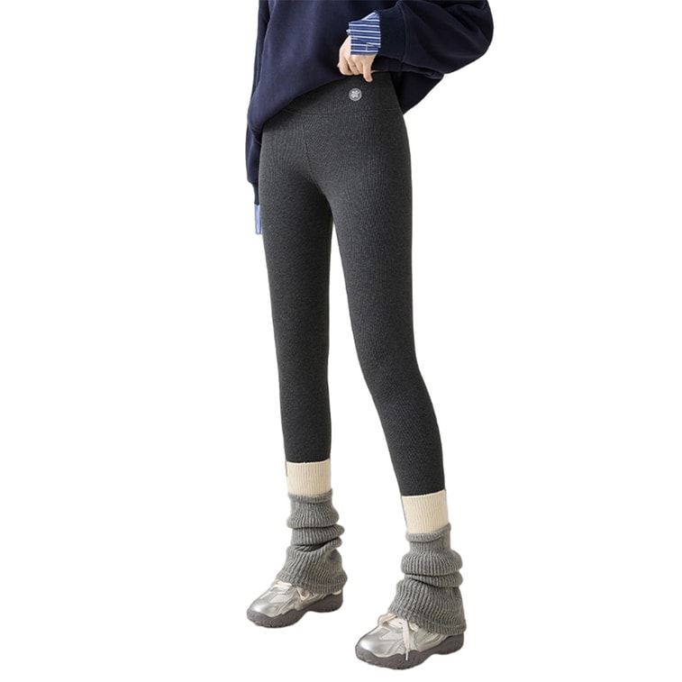 Autumn and Winter Style Lamb Fleece Plus Size Pure Cotton Medium Thickness Skinny Leg Leggings Dark Gray M