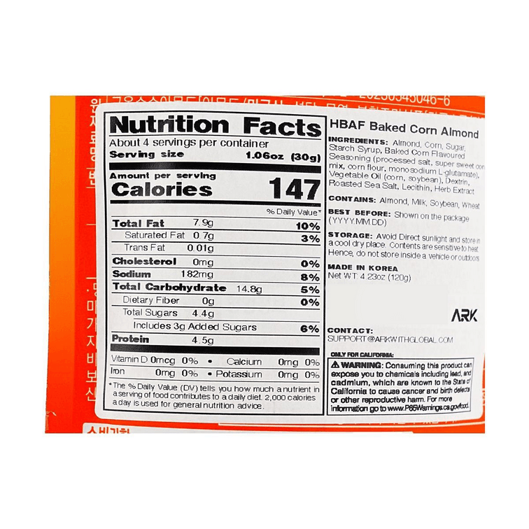 Baked Corn Almond 4.23 oz【Korean Popular Nut Snacks】