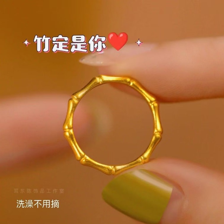 Bamboo knot vegetarian ring with adjustable opening Chinese style and cool feeling set of 1