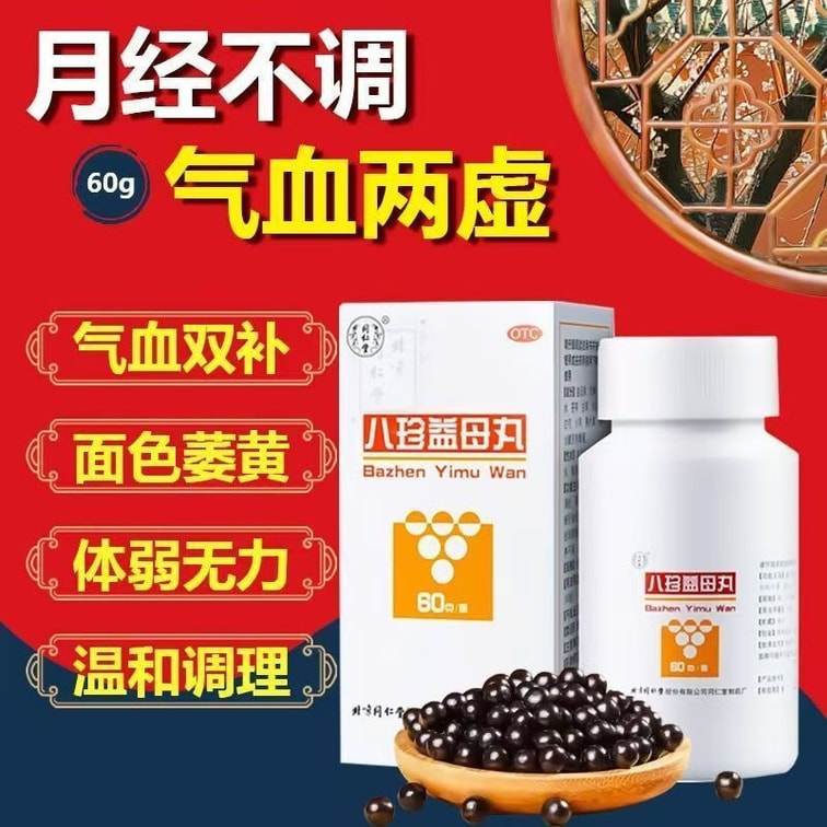 Ba Zhen Yi Mu Wan - Chinese herbal formula that replenishes qi-blood, regulates menstruation, and relieves fatigue. Ideal for irregular periods with pale flow, post-menstrual weakness, and anemia-related symptoms. Combines 8-tonic herbs with Motherwort for women's health