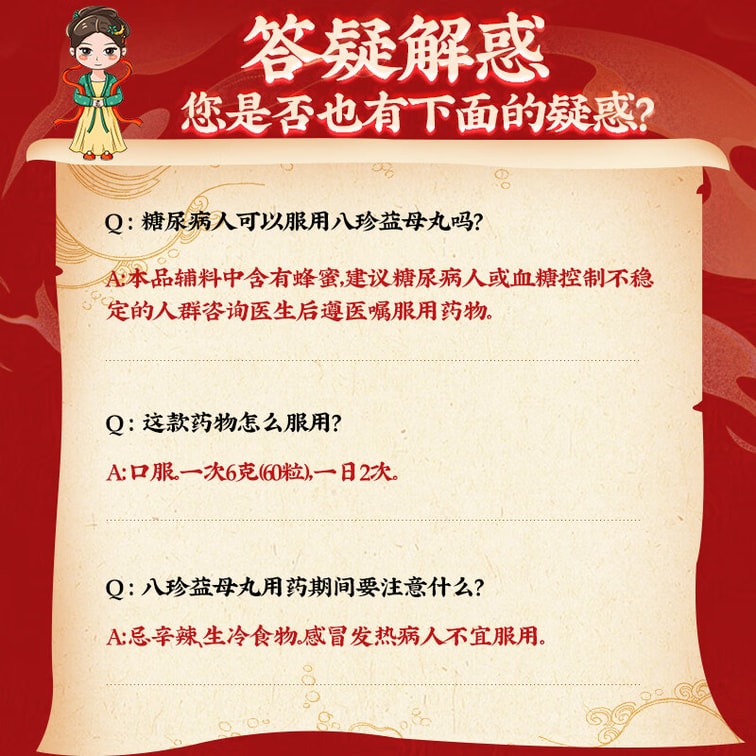 | Efficacy | Bazhen Yimu Pills |