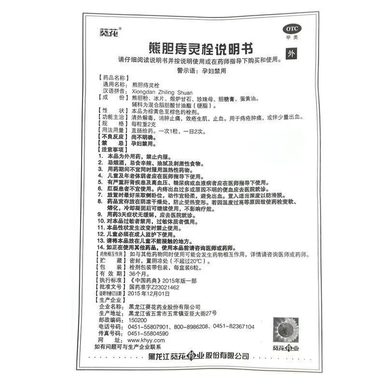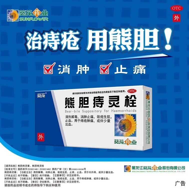 Bear Bile Hemorrhoid Suppository For Internal And External Hemorrhoids To Cool Blood 2g*6 Capsules/Box