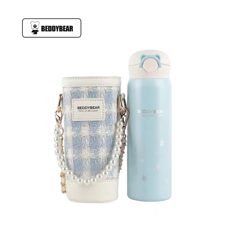 BEDDYBEAR Portable Water Bottle with Tweed Carrier Bag and Bead Strap 470ml | Yami