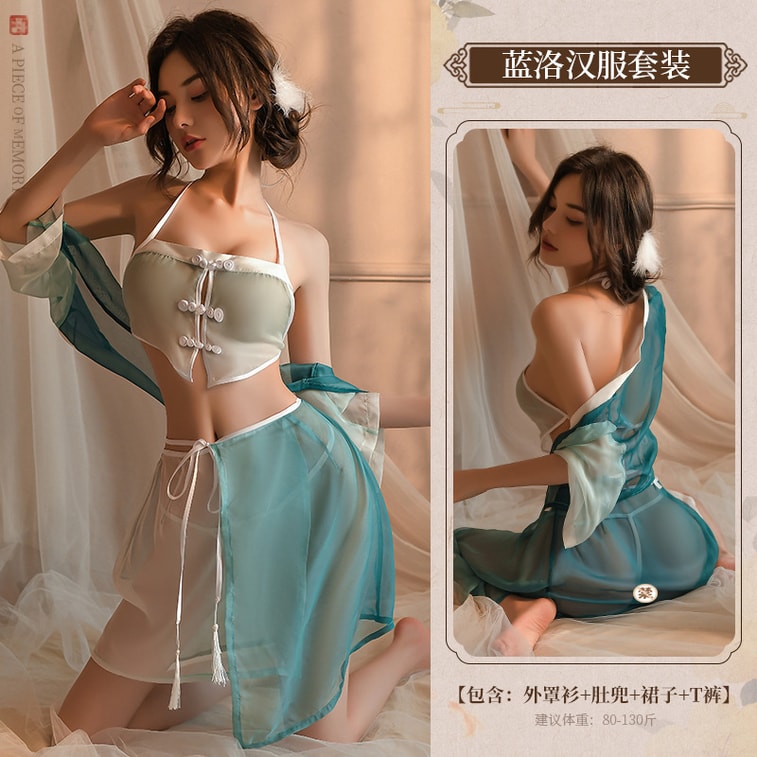 Belly bib ancient style Hanfu gradient uniform set even size blue and white