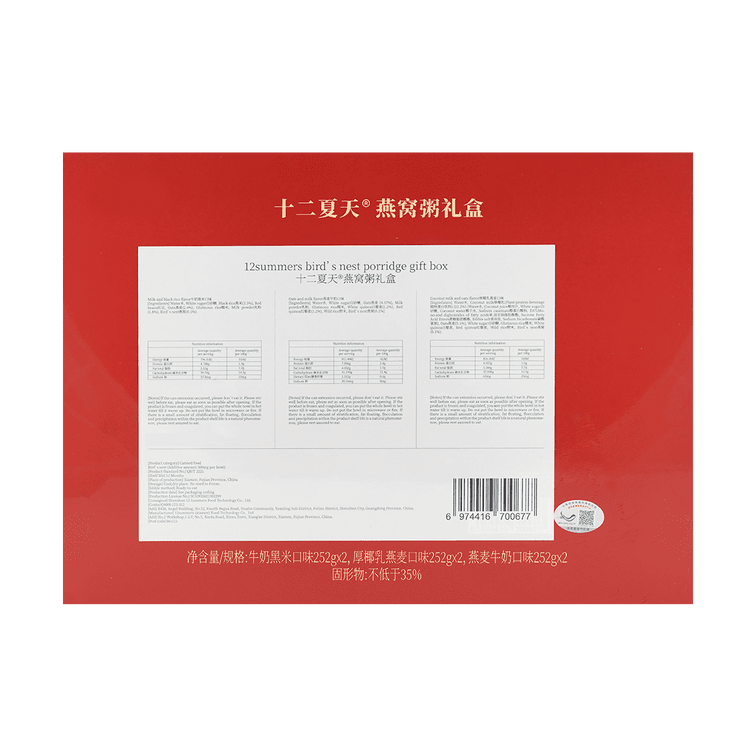 Bird's Nest Porridge Gift Box - 3 Flavors, 6 Bowls* 8.88oz