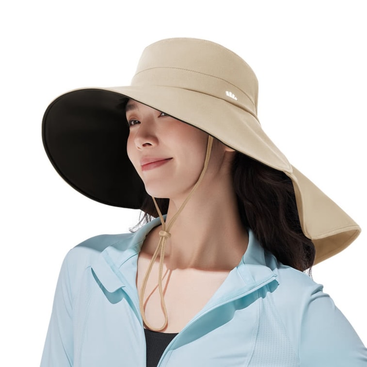 Black Lace Cape Sun Hat BM586 - almond color 360° Coverage (12cm Brim + 20cm Cape)