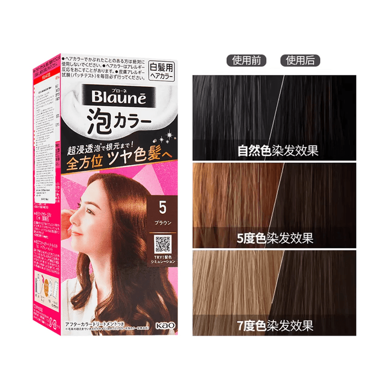 KAO Blaune Foam Hair Color, Plant-Based Bubble Dye, #5 Natural Dark Brown | Yami