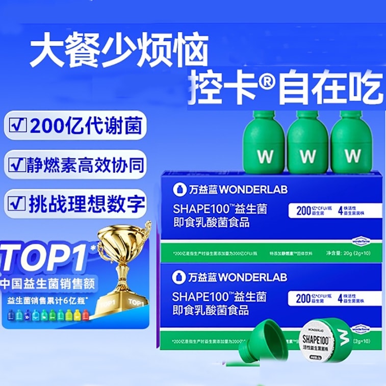 WONDERLAB Wan Yi Lan S100 Probiotic Powder "Little Green Bottle" - 30 Pack | 20B CFU with ABlife+LA100 for Weight Management | Blood Orange Flavor | 0 Hormones & Preservatives | Yami
