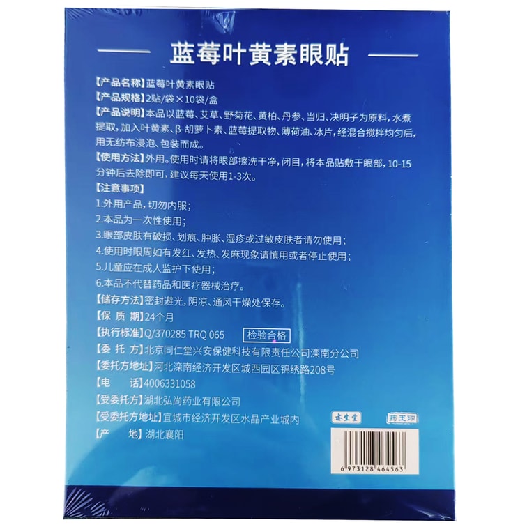Blueberry Lutein Eye Patch 20 Patches Relieve Fatigue Remove Dark Circles And Help Sleep