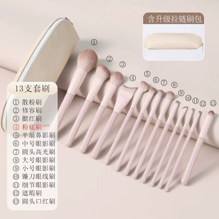 Blush Brush Set + Upgraded Zippered Makeup Bag + Tutorial Booklet 13-piece | Yami