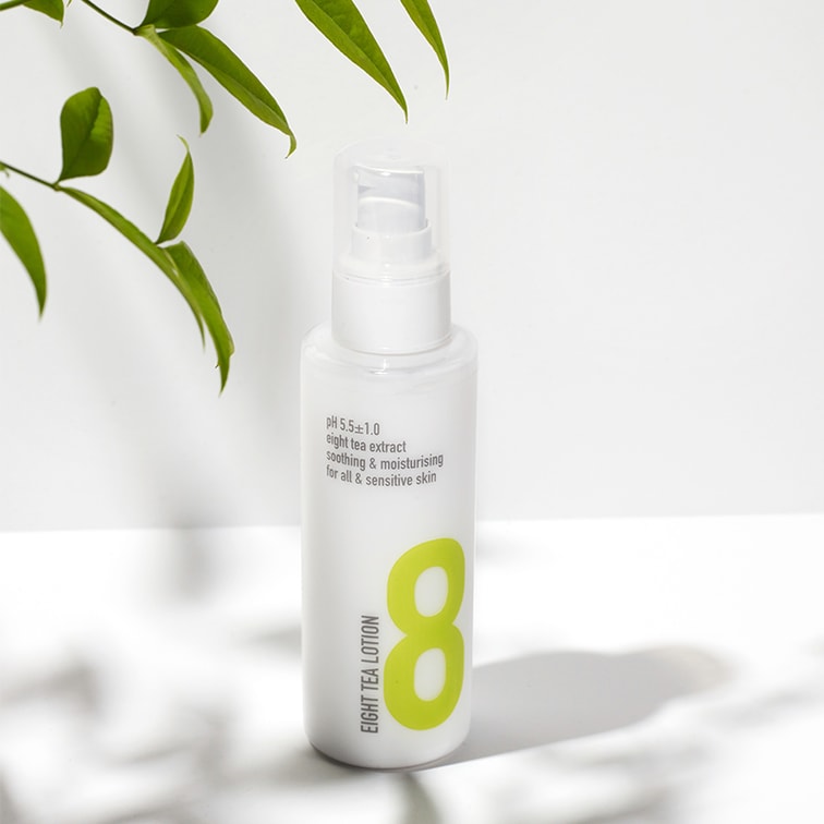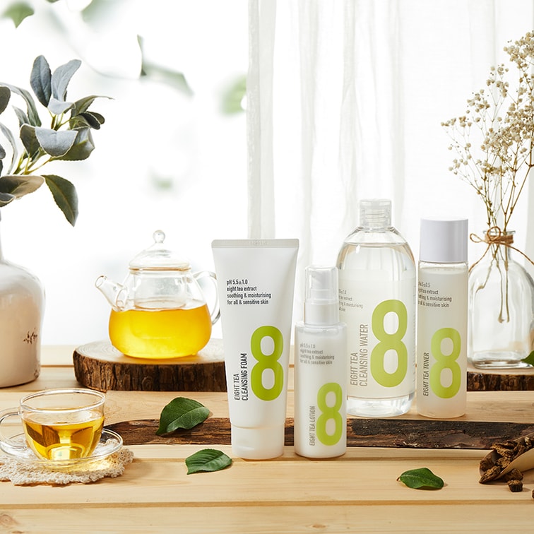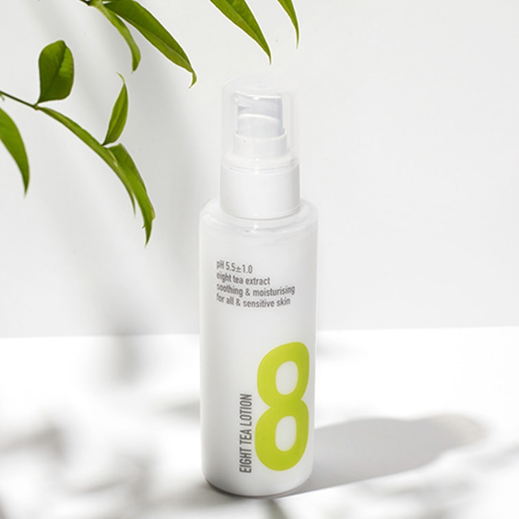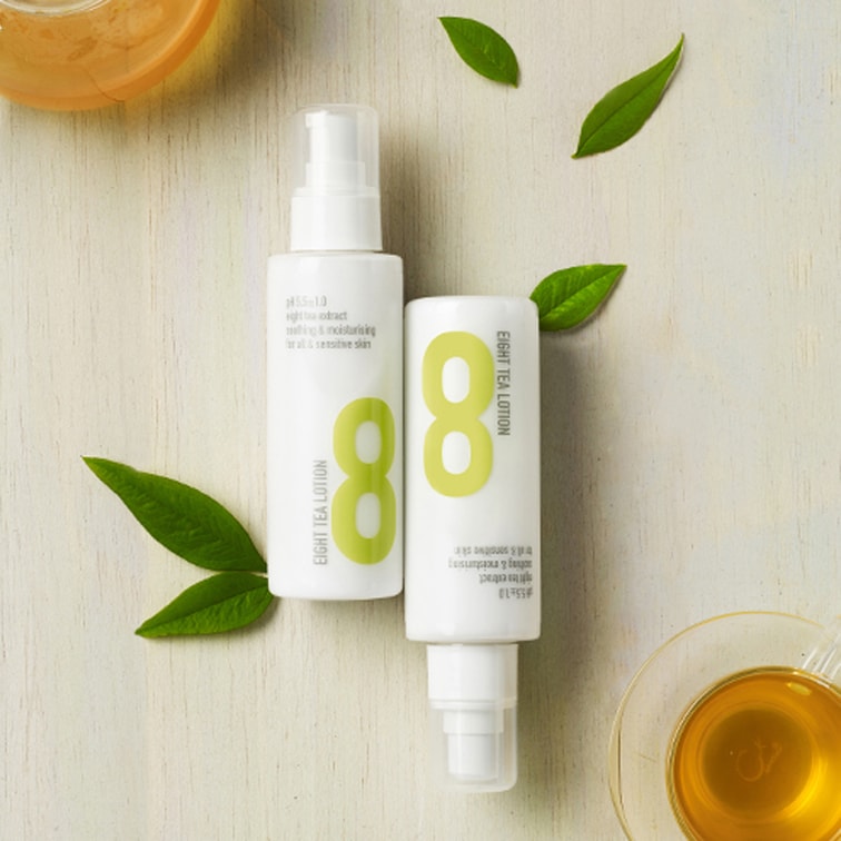 A alcohol-free hydrating lotion with weak-acidity con taining 8 kinds of tea extract