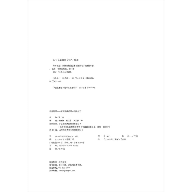 所以,《好好说话:新鲜有趣的话术精进技巧》抛开常见的教授套路,通过新鲜、有趣的说话技巧,达到修正读者三观、激发读者思维、传输使用技巧的目的,从而综合提升说话之道。